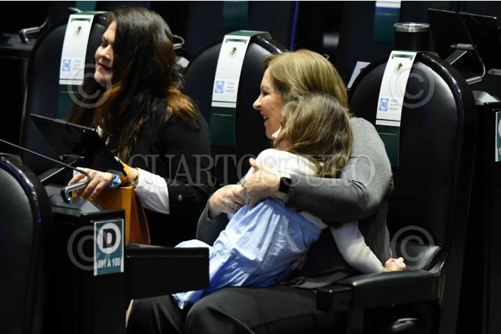 CIUDAD DE MÉXICO, 13FEBRERO2024.- Ana Teresa Aranda, diputada del PAN, convive con su familiar durante la sesión ordinaria de la Cámara de Diputados. FOTO: MARIO JASSO/CUARTOSCURO.COM