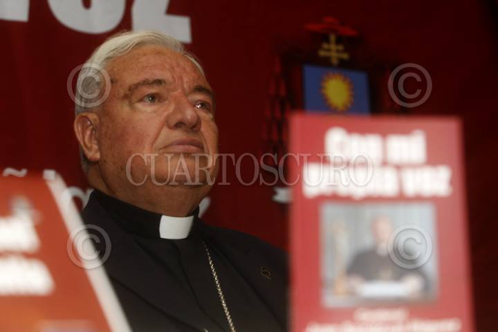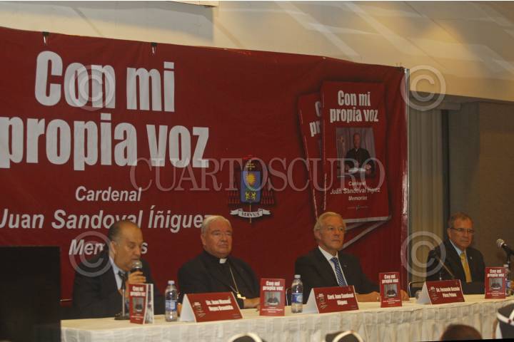 GUADALAJARA, JALISCO, 01JUNIO2016.- El Arzobispo emérito, Juan Sandoval Íñiguez, presento su mas reciente obra literaria llamada “Con mi Propia Voz”, en evento que tuvo lugar en el Club de Industriales de Jalisco. FOTO : FERNANDO CARRANZA GARCIA / CUARTOSCURO