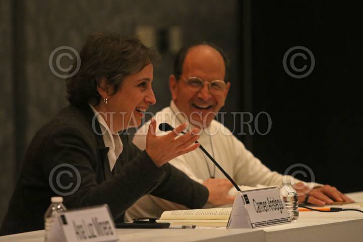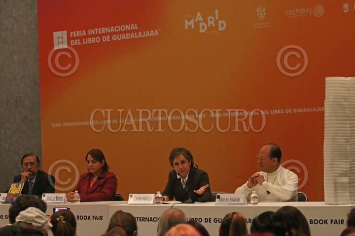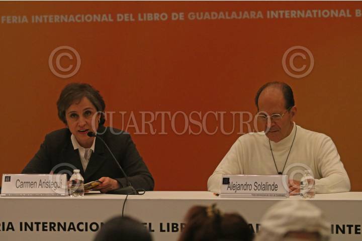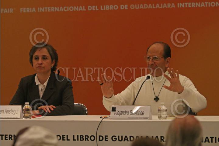 GUADALAJARA, JALISCO, 27NOVIEMBRE2017.-El Padre Alejandro Solalinde presento su libro “Los Migrantes del Sur” en el que participaron Carmen Aristegui y Juan Guillermo López, esto en el marco de la edición 31 de la Feria Internacional del Libro de Guadalajara que se lleva a cabo en las instalaciones de la Expo. FOTO: FERNANDO CARRANZA GARCIA / CUARTOSCURO.COM