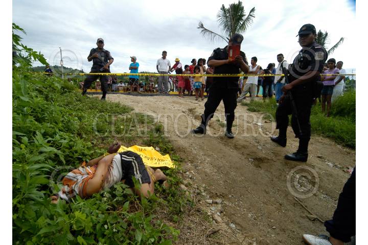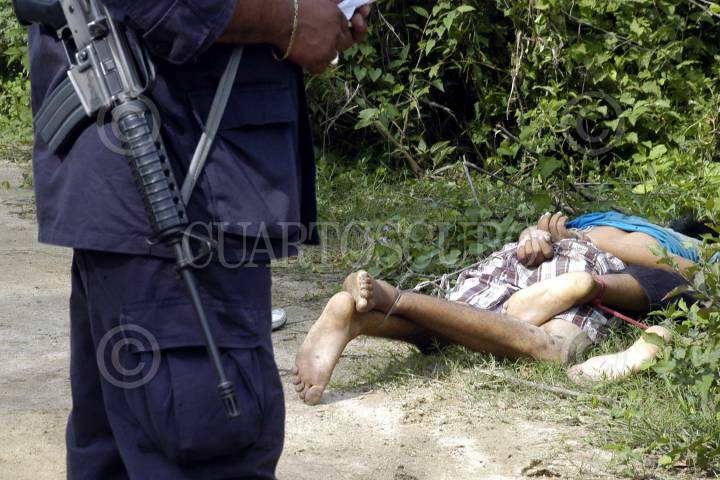 ACAPULCO, GUERRERO, 16AGOSTO2009.- Ejecutan a dos jóvenes no dentificados que presentaban huellas de tortura y con el tiro de gracia de entre 17 y 20 años de edad en una terraceria rumbo a la laguna del poblado de Tres Palos. FOTO: BERNANDINO HERNANDEZ/CUARTOSCURO.COM