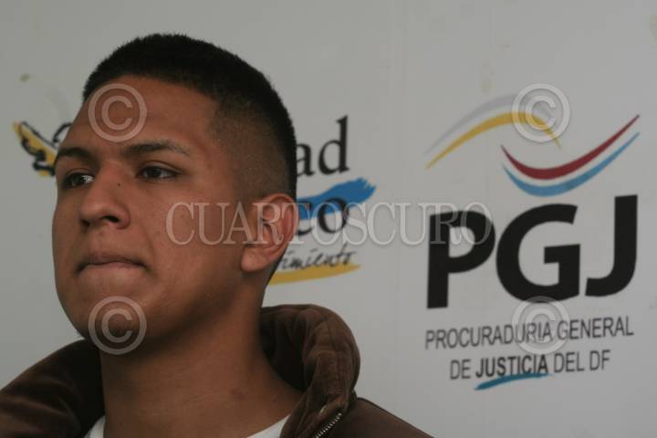 MÉXICO, D.F., 26SEPTIEMBRE2010.- Luis Ángelo Ramirez Vazquez, alias el "Angelo" fue presentado en las Instalaciones de la PGJDF por su presunta participación en el delito de homicidio por lo que en las próximas horas sera consignado al reclusorio Preventivo Varonil Oriente. FOTO: ENRIQUE ORDÓÑEZ/CUARTOSCURO.COM