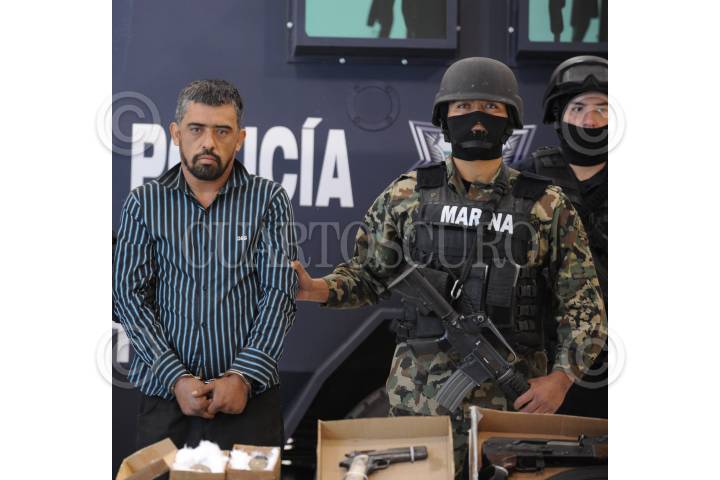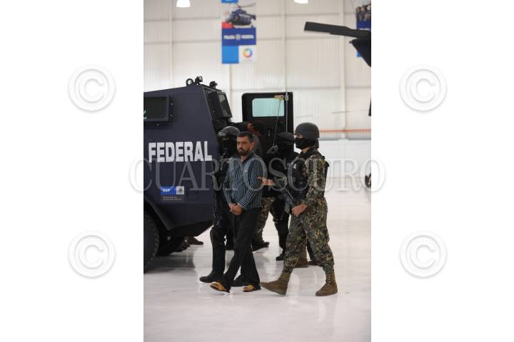MEXICO, D.F., 31DICIEMBRE2010.- Francisco López Villanueva, alias El Bigotes y presunto jefe de plaza de la llamada Familia Michoacana en las poblaciones de La Mira y Guacamayas, fue presentado en el centro de mando de la Policía Federal después de ser detenido por agentes de la Policía Federal, de las secretarías de la Defensa Nacional y de Marina. FOTO: GABINO ACEVEDO/CUARTOSCURO.COM