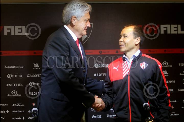 ZAPOPAN, JALISCO, 13MAYO2016.-El Profe José Guadalupe Cruz, fue presentado esta mañana en las instalaciones de Atlas Briseño, como nuevo director técnico de los rojinegros del Atlas el cual firmo contrato por un año con la institución, dicha presentación fue encabezada por el directivo del club Alberto de la Torre. FOTO : FERNANDO CARRANZA GARCIA / CUARTOSCURO.COM