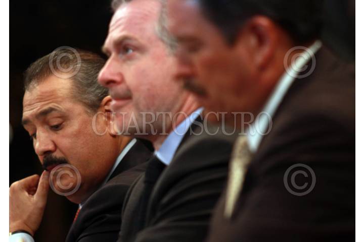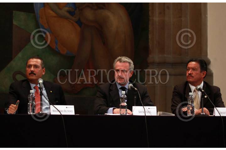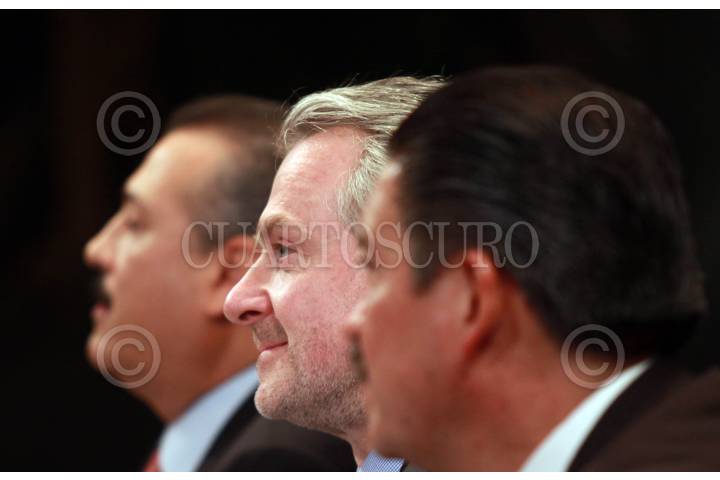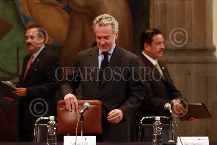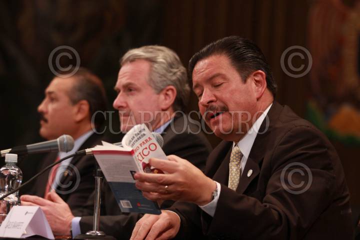 MÉXICO, D.F., 09FEBRERO2010.- Los Senadores Manlio Fabio Beltrones (PRI), Santiago Creel (PAN) y Carlos Navarrete (PRD),asistieron como presentadores del libro Un futuro para México de Jorge Castañeda y Héctor Aguilar Camín. FOTO: SÁSHENKA GUTIÉRREZ/CUARTOSCURO.COM
