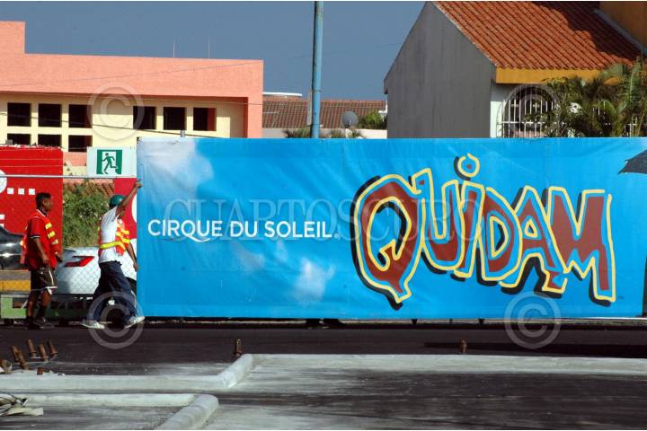 VERACRUZ, VERACRUZ. 15FEBRERO2008.- Por primera vez llega con sus setecientas cincuenta toneladas de equipo el espectáculo del Cirque Du Soleil, a Veracruz, presentando QUIDAM con diez fechas a partir del veintisiete de Febrero. El dÌa de hoy quedo instalada la gran carpa donde trabajaron mas de cien hombres para su colocación. FOTO: JOSÉ CANDELARIO/CUARTOSCURO.COM