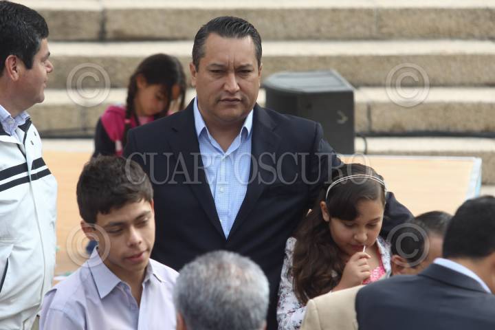 MÉXICO, D.F., 09OCTUBRE2010.- José Francisco Blake Mora, secretario de Gobernación acompañado de su hija momentos antes de dar inicio el Festival Olímpico del Bicentenario que se realiza sobre el Paseo de la Reforma y en el que se presentarán atletas mexicanos. FOTO: RODOLFO ANGULO/CUARTOSCURO.COM