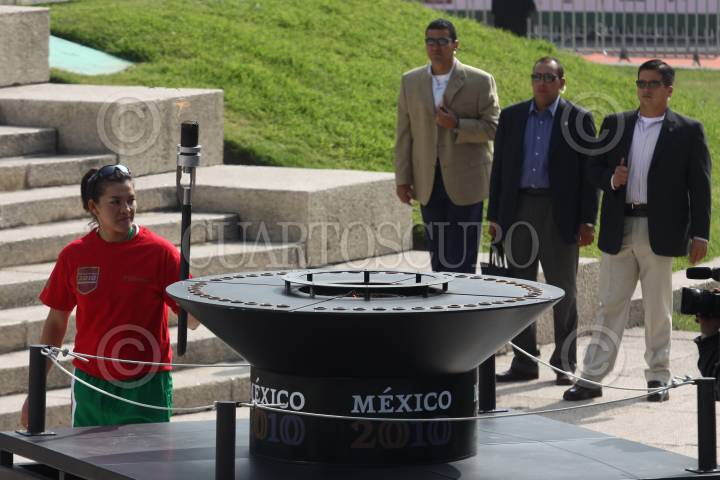 MÉXICO, D.F., 09OCTUBRE2010.- La taekwondoin María del Rosario Espinoza fue la encargada de encender el pebetero durante el inicio del Festival Olímpico del Bicentenario que se realiza sobre el Paseo de la Reforma y en el que se presentarán atletas mexicanos. FOTO: RODOLFO ANGULO/CUARTOSCURO.COM