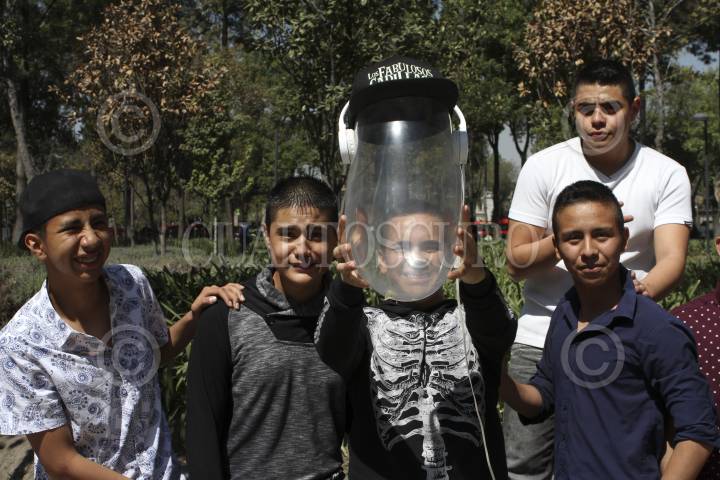 CIUDAD DE MÉXICO, 11FEBRERO2017.- En el Día Internacional del Condón, un grupo de jóvenes juegan con un preservativo. FOTO: ANTONIO CRUZ /CUARTOSCURO.COM
