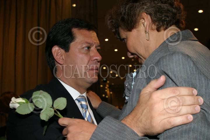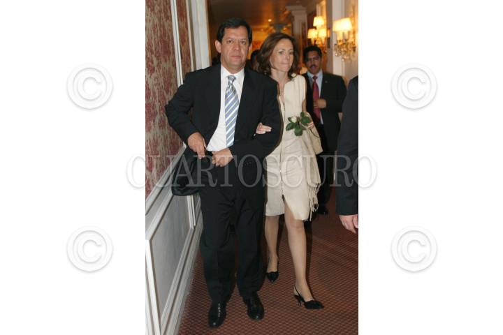 MEXICO, D.F., 07MARZO2006.- Roberto Campa, candidato a la presidecia de la República por el Partido Nueva Alianza y Crista Grassi de Campa, durante una reunión del político con mujeres con motivó del Día Internacional de la Mujer, en el University Club. FOTO: Moisés Pablo/CUARTOSCURO.COM