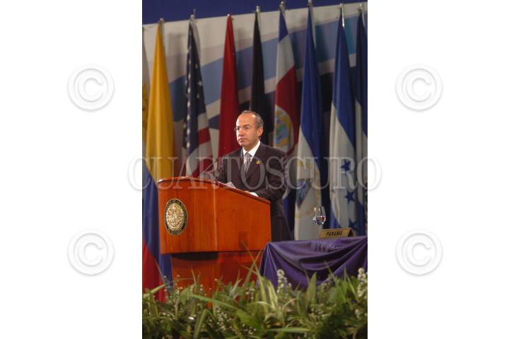 SAN SALVADOR, REPUBLICA DEL SALVADOR 16ENERO2007.- El presidente Calderon Hinojosa durante la ceremonia del acto conmemorativo del XV aniversario de la firma de los acuerdos de paz de El Salvador. FOTO IMPERIO RESENDIZ/CUARTOSCURO.COM