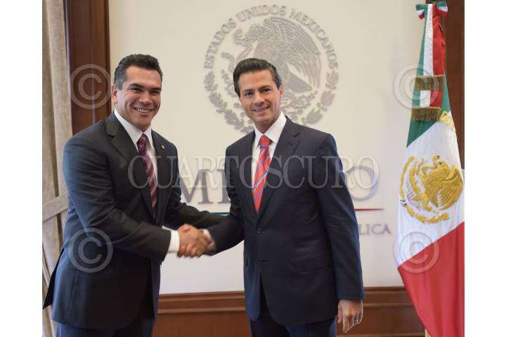 MÉXICO, D.F., 30JUNIO2015.- El Presidente de la República, Enrique Peña Nieto, se reunió hoy en la Residencia Oficial de Los Pinos con el gobernador electo del Estado de Campeche, Alejandro Moreno Cárdenas, a quien ratificó su felicitación por el triunfo obtenido en la elección del 7 de junio y le manifestó su interés por emprender un trabajo coordinado para brindar atención a las necesidades de la sociedad campechana. FOTO: PRESIDENCIA /CUARTOSCURO.COM