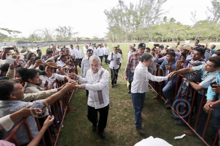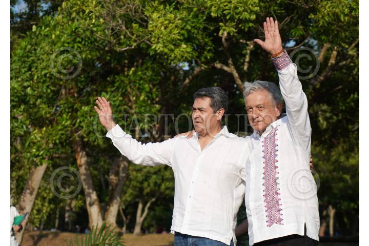 MINATITLÁN, VERACRUZ, 27JULIO2019.- Andrés Manuel López Obrador, Presidente de México y Juan Orlando Hernández Alvarado, Presidente de Honduras, en el acto Plan de Desarrollo Integral. Sembrando Vida, Jóvenes Construyendo el Futuro en las instalaciones de la 29 Zona Militar, ubicadas en Minatitlán, Veracruz. Los acompañan Luisa María Alcalde Luján, Secretaria de Trabajo y Previsión Social; María Luisa Albores, Secretaria de Bienestar; Marcelo Ebrard, Secretario de Relaciones Exteriores y el General Luis Cresencio Sandoval González, Secretario de la Defensa Nacional. FOTO: PRESIDENCIA /CUARTOSCURO.COM