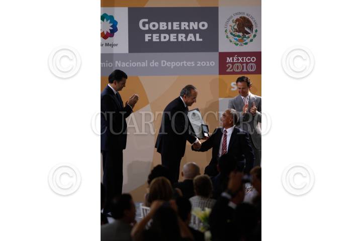 MÉXICO, D.F., 20NOVIEMBRE2010.- Alonso Lujambio Irazábal, Secretario de Educación Pública; Felipe Calderón Hinojosa, presidente de México; y Mauro Máximo de Jesús durante la entrega del premio Nacional del Deporte. FOTO: IVAN STEPHENS/CUARTOSCURO.COM