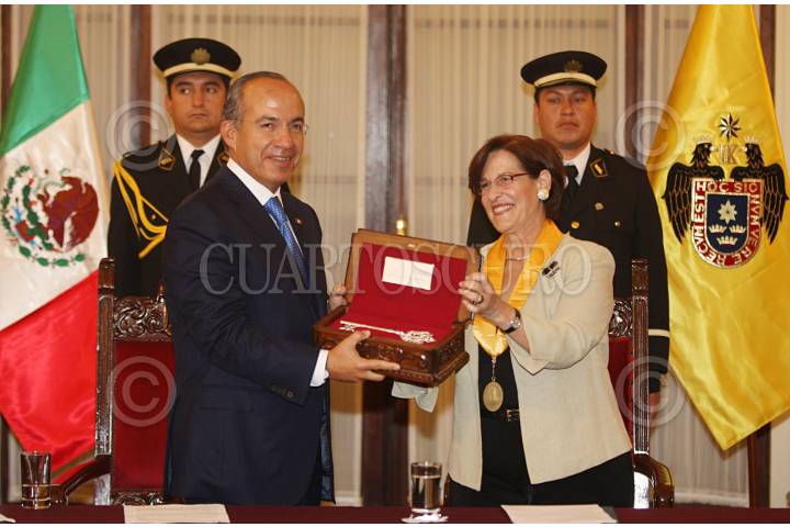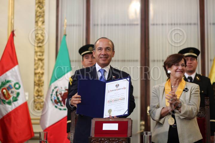 LIMA, PERU, 28ABRIL2011.- Felipe Calderón Hinojosa, presidente de México, se reunió esta tarde con la alcaldesa de Lima Susana Villarán, quien le entregó un reconocimiento por su visita. FOTO: ADOLFO JASSO/CUARTOSCURO.COM