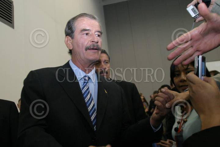 MEXICO, D.F., 10MARZO2006.- Vicente Fox, Presidenete de la República, al término de la comida con motivo de la clausura del 1er. foro regional Impulsando el Desarrollo Regional", en el Centro Banamex. FOTO: Moisés Pablo/CUARTOSCURO.COM