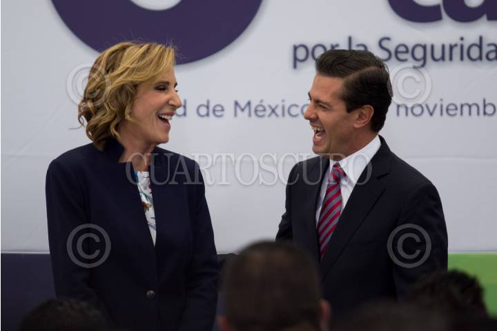 CIUDAD DE MÉXICO, 13NOVIEMBRE2017.- Miguel Ángel Osorio Chong, secretario de Gobernación; Enrique Peña Nieto, Presidente de México; María Elena Morera, presidenta de Causa en Común, y Miguel Ángel Mancera, Jefe de Gobierno, durante el 6 Foro Nacional Sumemos Causa, en el Alcázar del Castillo de Chapultepec. FOTO: GALO CAÑAS /CUARTOSCURO.COM