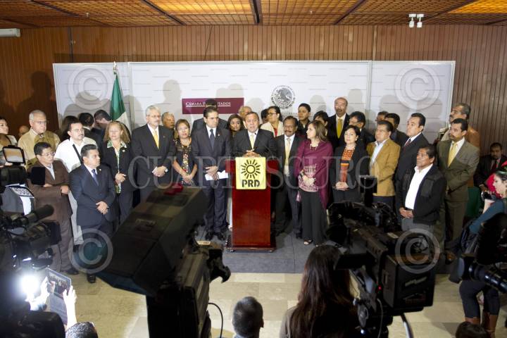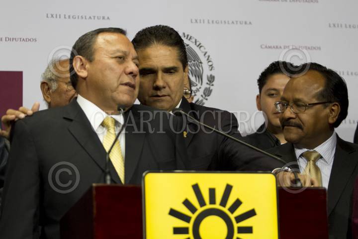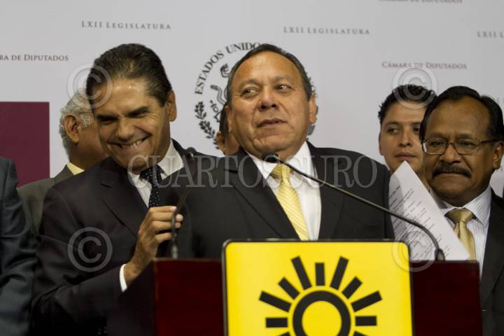 MÉXICO, D.F., 25JULIO2013.- Jesús Zambrano, presidente Nacional del PRD acompañado de Silvano Aureoles, diputado y coordinador de está bancada en la Cámara de Diputados, acompañado de los legisladores federales dieron a conocer su postura sobre la reforma energética. FOTO: GUILLERMO PEREA /CUARTOSCURO.COM