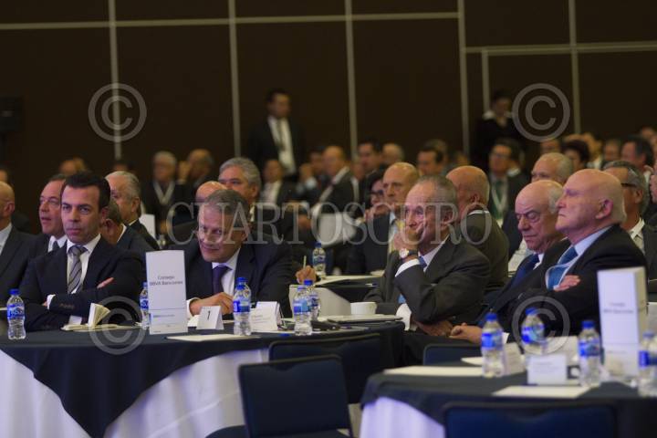 MÉXICO, D.F., 09JUNIO2015.- Alejandro Ramirez, presidente de Cinépolis, Luis Robles Miaja, presidente del Consejo de Administración BBVA Bancomer, Alberto Baillères González, presidente del Grupo BAL y consejero de BBVA Bancomer y Francisco González Rodríguez, presidente del Grupo BBVA, durante la reunión nacional de consejeros de BBVA Bancomer. FOTO: MOISÉS PABLO /CUARTOSCURO.COM
