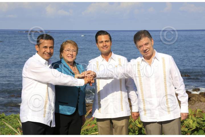 PUNTA MITA, NAYARIT, 20JUNIO2014.- Ollanta Humala, presidente de Perú; Michelle Bachelet, presidenta de Chile; Enrique Peña Nieto, presidente de México, y Juan Manuel Santos, presidente de Colombia, posaron para la foto oficial de la Novena Cumbre de la Alianza del Pacífico. FOTO: CUARTOSCURO.COM