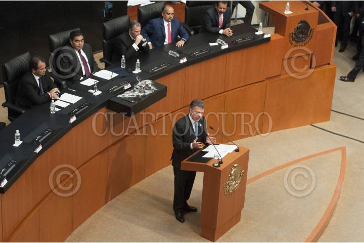 MÉXICO, D.F., 08MAYO2015.- Juan Manuel Santos, presidente de Colombia, visitó el Senado de la República para presenciar la sesión solemne de la Comisión Permanente del Congreso de la Unión. FOTO: DIEGO SIMÓN SÁNCHEZ /CUARTOSCURO.COM