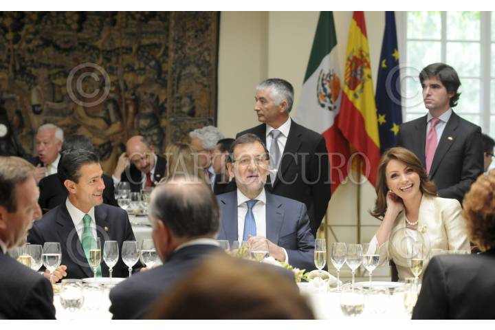 MADRID, ESPAÑA, 10JUNIO2014.- Como parte de sus actividades en el marco de la Visita de Estado que realiza al Reino de España, el Presidente Enrique Peña Nieto y su esposa, Angélica Rivera, asistieron a una comida que, en su honor, ofrecieron el Presidente del Gobierno español, Mariano Rajoy, y su esposa, la señora Elvira Fernández, en el Palacio de la Moncloa. FOTO: CUARTOSCURO.COM