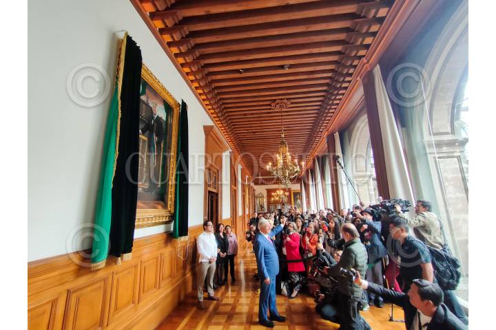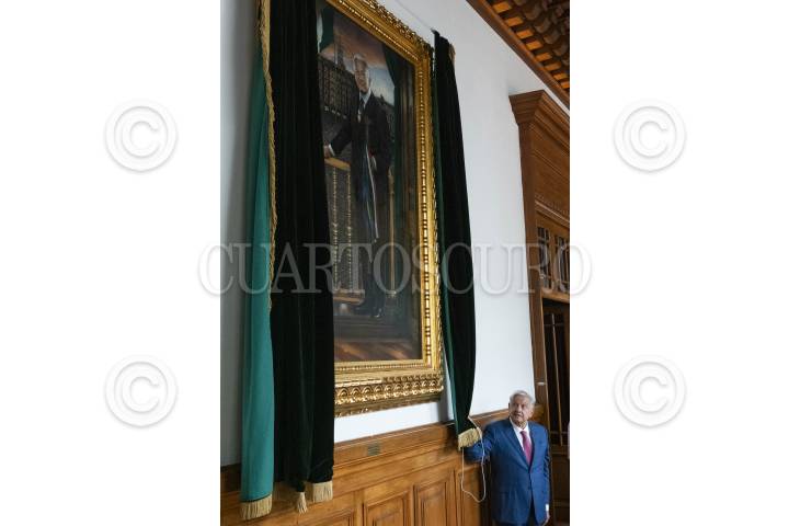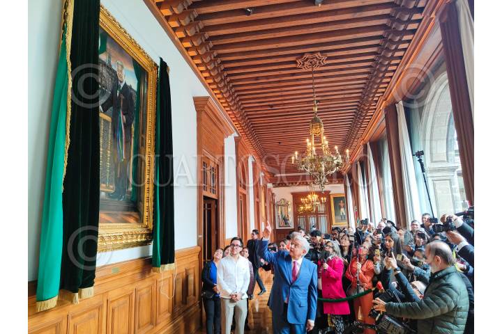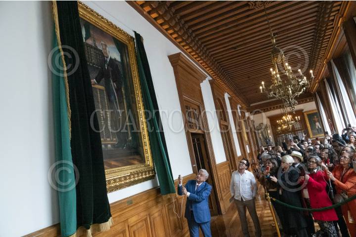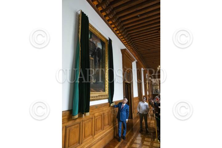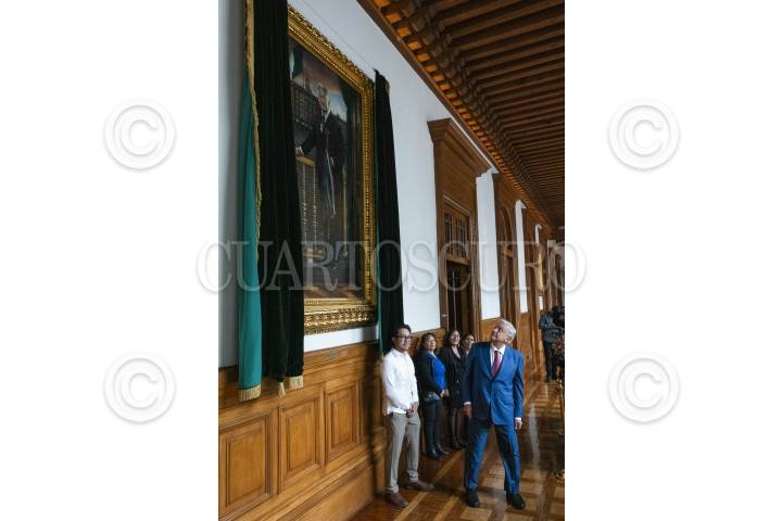 CIUDAD DE MÉXICO, 30SEPTIEMBRE2024.- Andrés Manuel López Obrador, Presidente de México, develó su pintura en los pasillos de Palacio Nacional, una obra del pintor yucateco Ermilio Espinoza, como parte de sus últimas actividades al frente del Poder Ejecutivo. FOTO: MOISÉS PABLO/CUARTOSCURO.COM