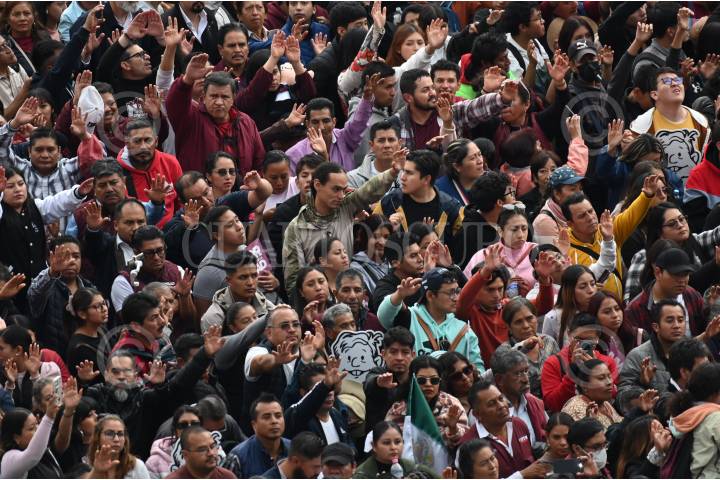 CIUDAD DE MÉXICO, 01OCTUBRE2024.- Simpatizantes de Claudia Sheinbaum participan en la ceremonia de entrega de Bastón de Mando. FOTO: DANIEL AUGUSTO/ CUARTOSCURO.COM