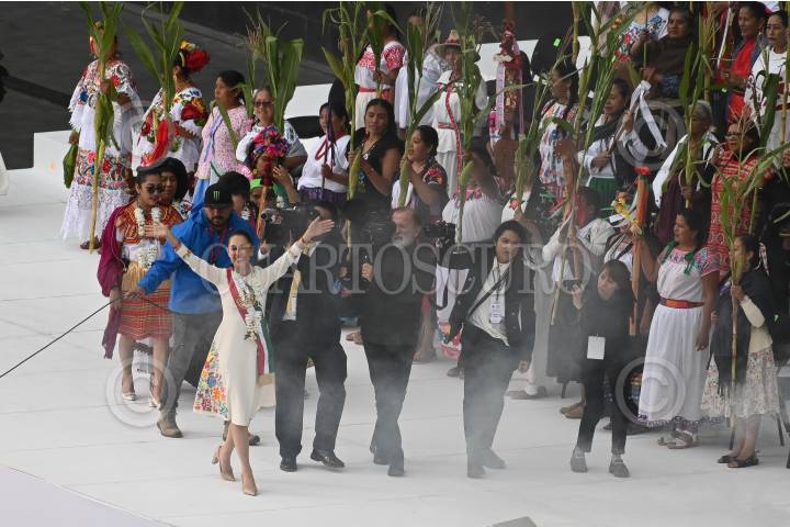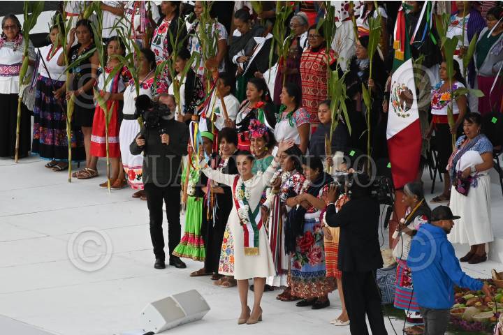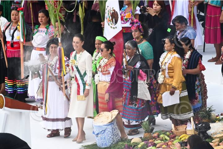 CIUDAD DE MÉXICO, 01OCTUBRE2024.- De parte de mujeres de comunidades indígenas, Claudia Sheinbaum, presidenta de México,recibe el Bastón de Mando. FOTO: DANIEL AUGUSTO/ CUARTOSCURO.COM