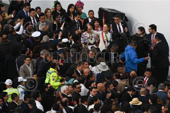 CIUDAD DE MÉXICO, 01OCTUBRE2024.- Claudia Sheinbaum, presidenta de México, saluda a sus simpatizantes previo a recibir el Bastón de Mando de los pueblos indígenas. FOTO: DANIEL AUGUSTO/ CUARTOSCURO.COM
