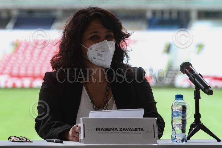 Irasema Zavaleta, durante la conferencia en donde se presentó la iniciativa "Grita México" en el Estadio Azteca.