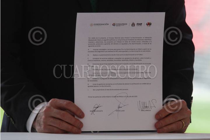 Documento firmado de colaboración de la iniciativa "Grita México" en el Estadio Azteca.
