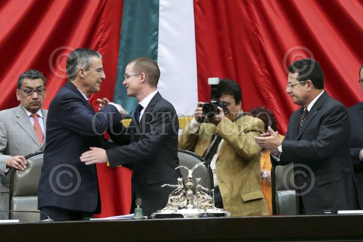 CIUDAD DE MÉXICO, 31AGOSTO201.- El diputado panista Javier Bolaños, tomo protesta como nuevo presiente de la mesa directiva de la Cámara de Diputados, su antecesor Jesús Zambrano Grijalva, agradeció a los legisladores su participación durante su mandato en la mesa directiva. FOTO: SAÚL LÓPEZ /CUARTOSCURO.COM