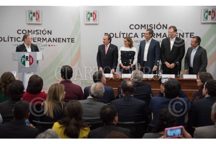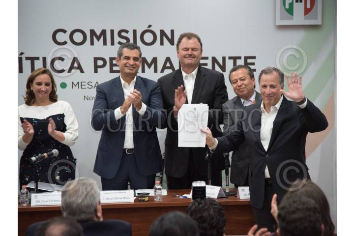 CIUDAD DE MÉXICO, 27NOVIEMBRE2017.- José Antonio Meade se registro como aspirante a candidato la Presidencia de la República del PRI, ante su Comisión Política Permanente presidida por su dirigente nacional Enrique Ochoa Reza. FOTO: MARIO JASSO /CUARTOSCURO.COM