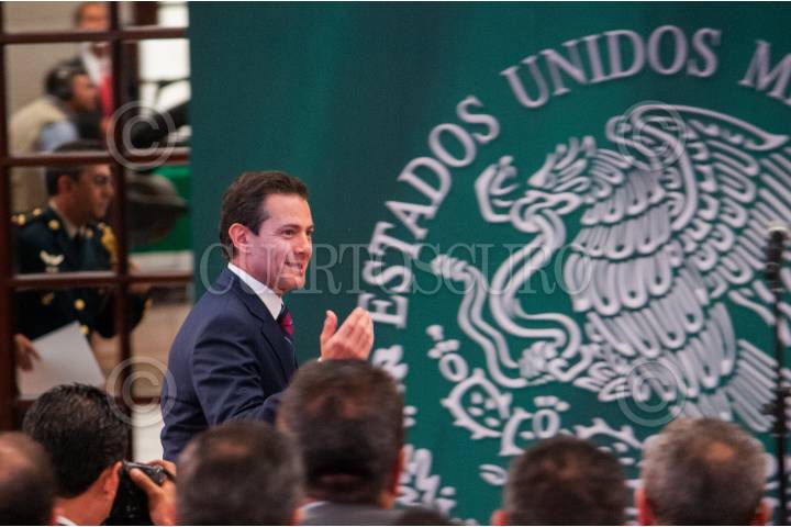 CIUDAD DE MÉXICO, 04ABRIL2018.- Enrique Peña Nieto, presidente de la República, durante el nombramiento de Baltazar Hinojosa Ochoa como nuevo titular de la Secretaría de Agricultura, Ganadería, Desarrollo Rural, Pesca y Alimentación (SAGARPA), esto en el salón Adolfo López Mateos de la residencia oficial de Los Pinos. FOTO: DIEGO SIMÓN SÁNCHEZ /CUARTOSCURO.COM