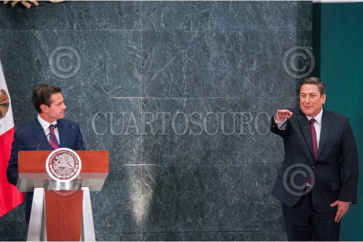 CIUDAD DE MÉXICO, 04ABRIL2018.- Baltazar Hinojosa Ochoa, tomó protesta como nuevo titular de la Secretaría de Agricultura, Ganadería, Desarrollo Rural, Pesca y Alimentación (SAGARPA) ante el presidente Enrique Peña Nieto, en el salón Adolfo López Mateos de la residencia oficial de Los Pinos. FOTO: DIEGO SIMÓN SÁNCHEZ /CUARTOSCURO.COM