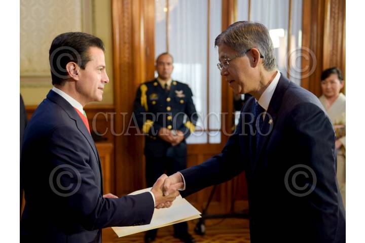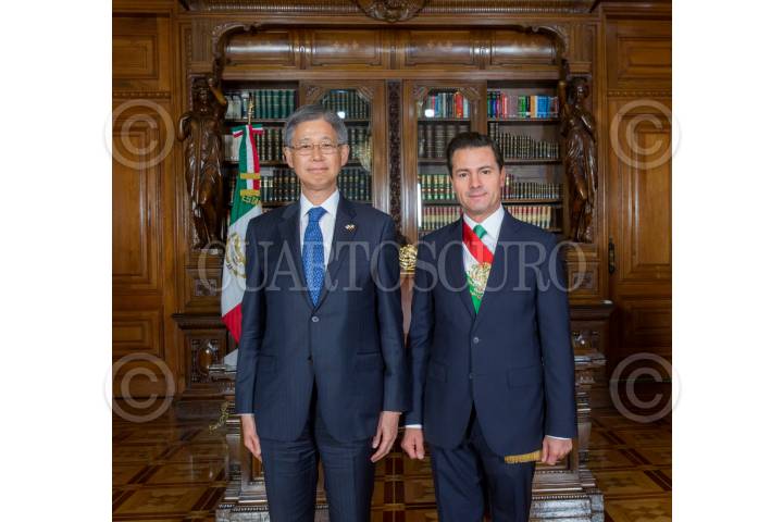 CIUDAD DE MÉXICO, 07MAYO2018.- El Presidente de la República, Enrique Peña Nieto, recibió hoy, en el Palacio Nacional, las cartas credenciales de Yasushi Takase, Embajador de Japón, con quien dialogó sobre temas comunes y las prioridades de México en la relación bilateral. FOTO: PRESIDENCIA /CUARTOSCURO.COM