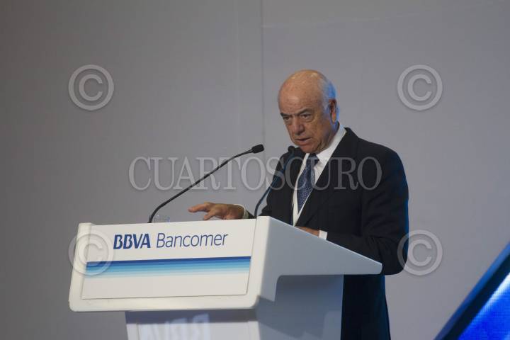 CIUDAD DE MÉXICO, 06JUNIO2016.- Francisco González Rodríguez, Presidente del Grupo BBVA, durante su participación en la Reunión Anual de Consejeros de BBVA Bancomer 2016. FOTO: CUARTOSCURO.COM