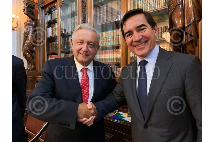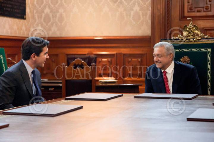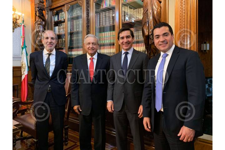 CIUDAD DE MÉXICO, 12JUNIO2019.- Andrés Manuel López Obrador, Presidente de México, se reunió en su oficina de Palacio Nacional con Carlos Torres Vila, presidente del Grupo BBVA. En la reunión también estuvieron presentes el secretario de Hacienda y Crédito Público, Carlos Manuel Urzúa; el jefe de Oficina de la Presidencia de la República, Alfonso Romo; Jaime Serra Puche, presidente de BBVA en México; y Eduardo Osuna Osuna, vicepresidente y director general de BBVA en México. FOTO: PRESIDENCIA /CUARTOSCURO.COM