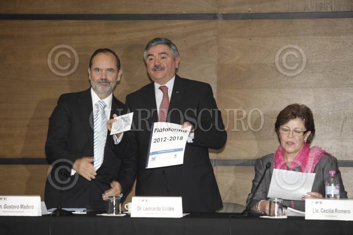 MÉXICO, D.F. 15FEBRERO2012.- Gustavo Madero, presidente nacional del PAN, entregó la plataforma Política 2012 -2018 al consejero presidente del Instituto Federal Electora Leonardo Váldez. FOTO: JUAN PABLO ZAMORA/CUARTOSCURO.COM