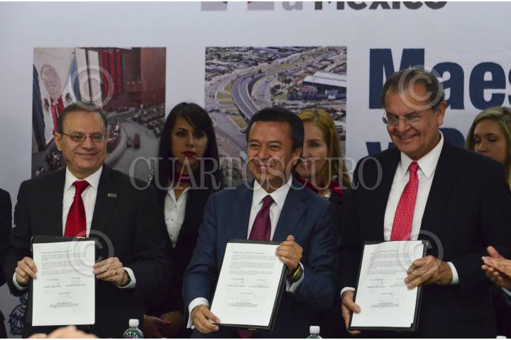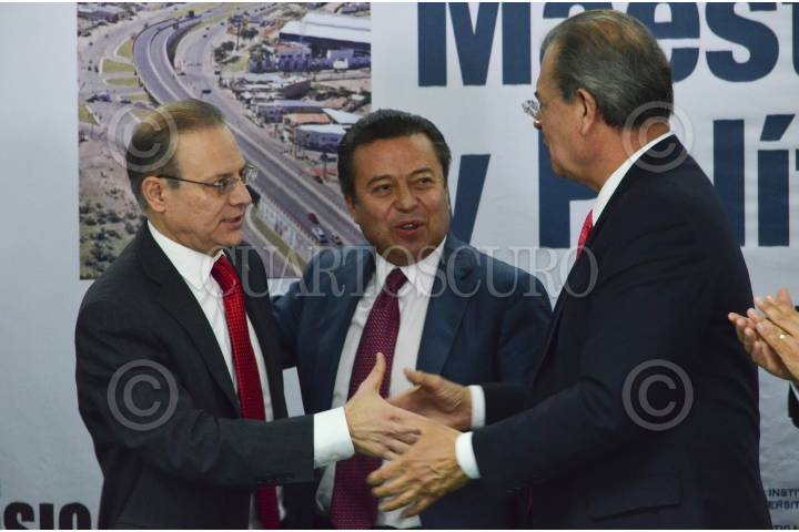 MÉXICO, DF., 09DICIEMBRE2013.- Adrián Gallardo Landeros, presidente de la Fundación Colosio; César Camacho Quiroz, presidente nacional del PRI, y Antonio Meza Estrada, presidente del Instituto Universitario Ortega y Gasset, tras la firma de convenio, cuyo objetivo del convenio es el otorgamiento de maestrías para formar profesionales políticos. El dirigente nacional mencionó, con respecto al Pacto por México y la situación actual del partido, que “el pacto ha sido eficaz a pesar de haber estado amenazado desde el principio por aquellos que no creyeron en él; el PRI está seguro del trayecto por el que está transitando, este es el preludio de 2014, el año para sorprender”. FOTO: MARÍA JOSÉ MARTÍNEZ / CUARTOSCURO.COM