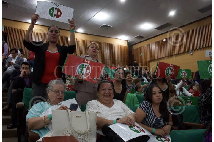 CIUDAD DE MÉXICO, 27SEPTIEMBRE2019.- Militantes del Partido Revolucionario Institucional, durante la XLVIII Sesión Extraordinaria del Consejo Político Nacional, en el auditorio, Plutarco Elías Calles en la sede del partido. FOTO: ROGELIO MORALES /CUARTOSCURO.COM
