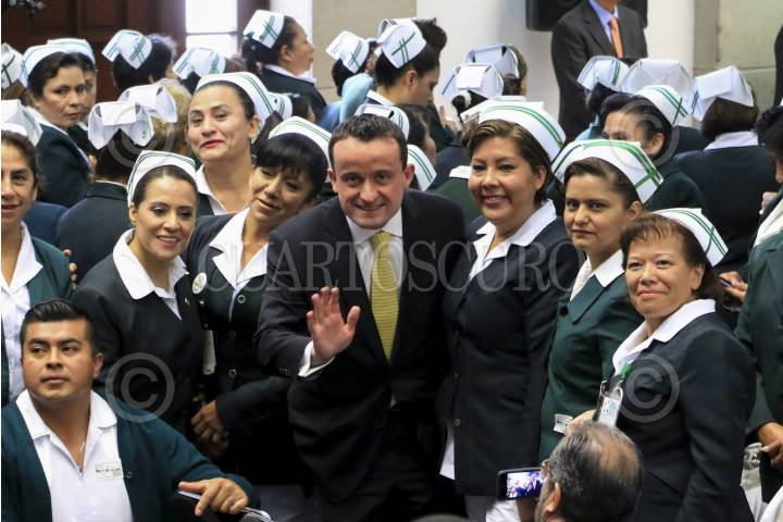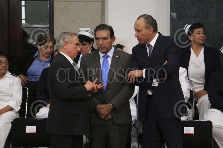 CIUDAD DE MÉXICO, 06ENERO2017.- Joel Ayala titular de la FETSE, Salvador López Brito, senador y José Reyes Baeza, titular del ISSSTE al inicio de la ceremonia del día de la enfermera y el enfermero 2017 en la residencia oficial de los pinos. FOTO: SAÚL LÓPEZ /CUARTOSCURO.COM
