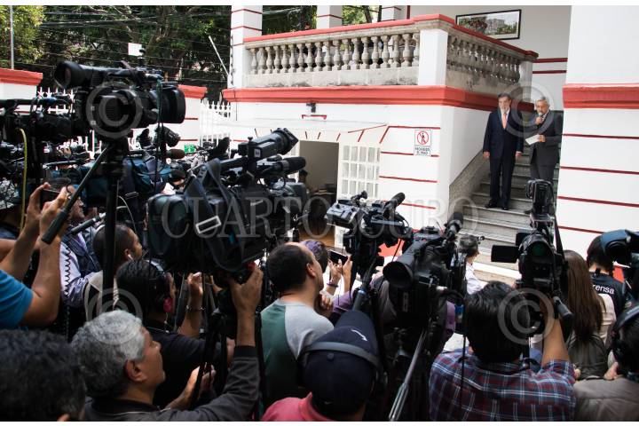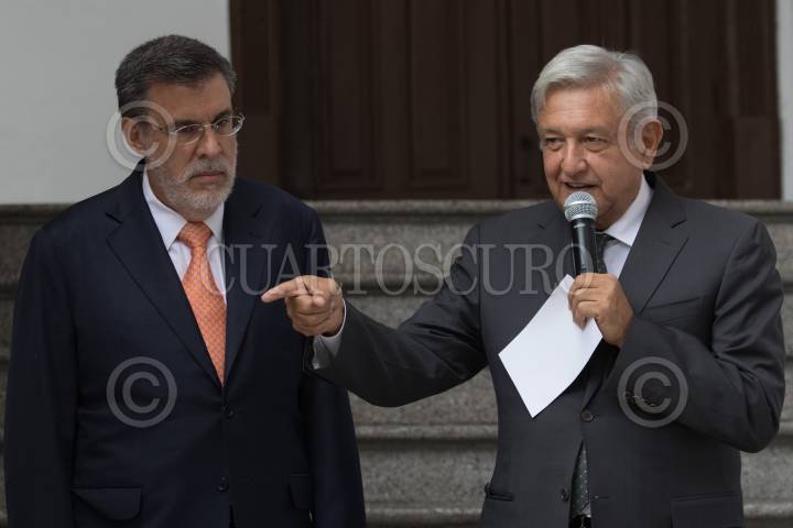 CIUDAD DE MÉXICO, 10AGOSTO2018.- Andrés Manuel López Obrador, presidente electo de México, acompañado de Julio Scherer Ibarra, designado como Consejero Jurídico de la Presidencia, dieron a conocer algunas iniciativas de reformas que van a permitir un gobierno democrático, así mismo dio detalles de la reunión que sostuvo durante la mañana con ministros de la Suprema Corte de Justicia de la Nación. FOTO: SAÚL LÓPEZ /CUARTOSCURO.COM