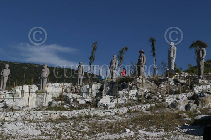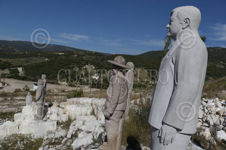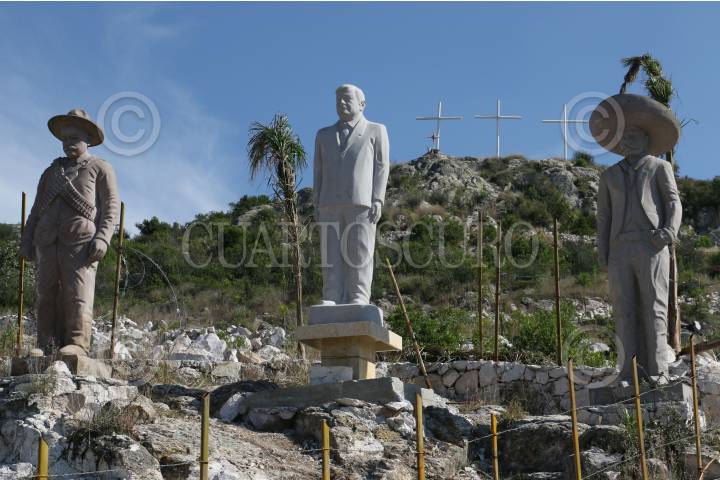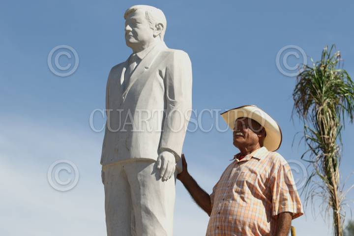 SANTA ROSA JAUREGUI, QUERETARO, 18NOVIEMBRE2018.- Una estatua de cantera de Andrés Manuel López Obrador fue colocada en la entrada del rancho "Rutilandia", propiedad de Rutilio Vargas quién fue el que la mando a construir. La estatua del futuro Presidente de México para el período 2018-2024 ya forma parte de un parque que alberga imágenes de cantera de personajes ilustres de la historia mexicana, la del tabasqueño se encuentra entre los generale de la Revolución Mexicana, Emilio Zapata y Francisco Villa. FOTO: SAÚL LÓPEZ /CUARTOSCURO.COM
