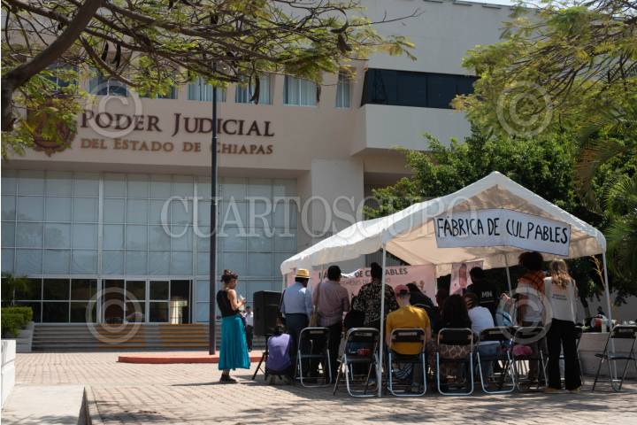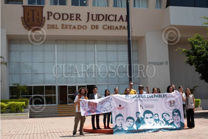 TUXTLA GUTIERREZ, CHIAPAS, 05MARZO2024.- El Centro de Derechos Humanos Fray Bartolomé de las Casas, el Grupo de Trabajo no Estamos Todos y la Red Ajmaq, ofrecieron una conferencia de prensa en las inmediaciones del edifico del Poder Judicial del Estado de Chiapas, en el que informaron las actualizaciones sobre los casos de personas privadas de la libertad bajo un sistema fallido de justicia en el que las personas no han contado con juicios apegados a las leyes, como por ejemplo el caso de cinco hombres acusados de asesinato en el que no han contado con un traductor en su lengua y la fiscalía incumple en la presentación de pruebas para culpabilizarlos, ellos están por cumplir dos años encarcelados. Siendo esta una violación a sus derechos humanos. FOTO: ISABEL MATEOS/CUARTOSCURO.COM