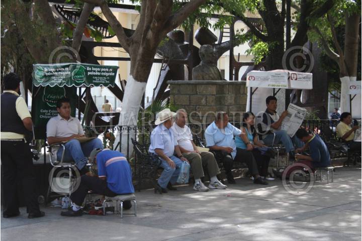 CHILPANCINGO, GUERRERO 09 FEBRERO2009.- Boleros que laboran en el zócalo de la ciudad seran desalojados por por parte del gobierno municipal, ya que argumentan que los lustradores de calzado dan mal aspecto al zócalo FOTO: OSCAR ALVARADO/CUARTOSCURO.COM