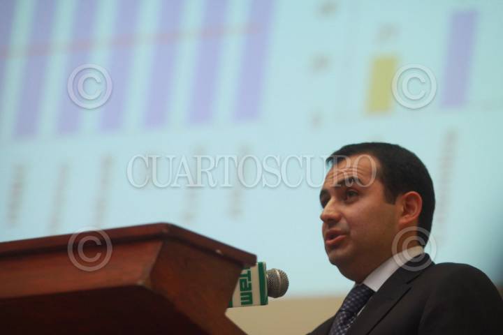 MÉXICO, D.F., 08ENER02010.- Ernesto Cordero Titular de la Secretaria de Hacienda, durante su intervención titulada Política Fiscal y las perspectivas Macroeconómicas para 2010, dentro del Seminario de Perspectivas Económicas 2010 realizado en una prestigiada universidad de la Ciudad de México. FOTO: SÁSHENKA GUTIÉRREZ/CUARTOSCURO.COM