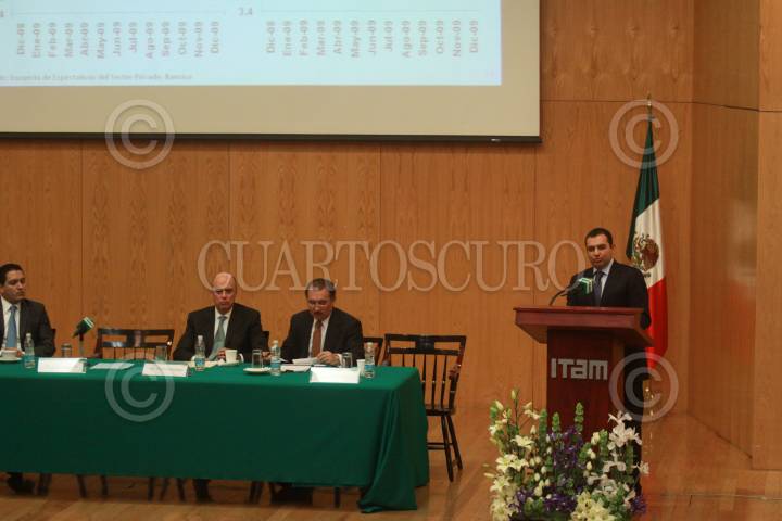 MÉXICO, D.F., 08ENER02010.- Agustin Carstens Carstens, Gobernador del Banco de México, durante su intervención titulada "La Politica Monetaria y la Recuperación Económica en 2010 dentro del Seminario de Perspectivas Económicas 2010 ", realizado en prestigiada universidad de la Ciudad de México. FOTO: SÁSHENKA GUTIÉRREZ/CUARTOSCURO.COM