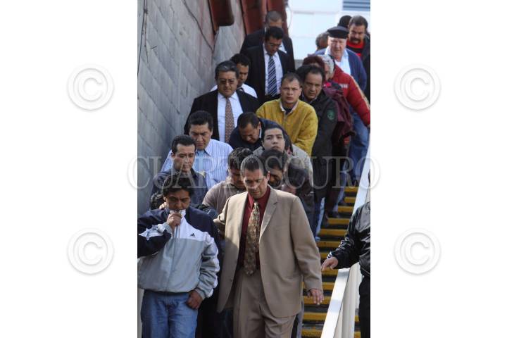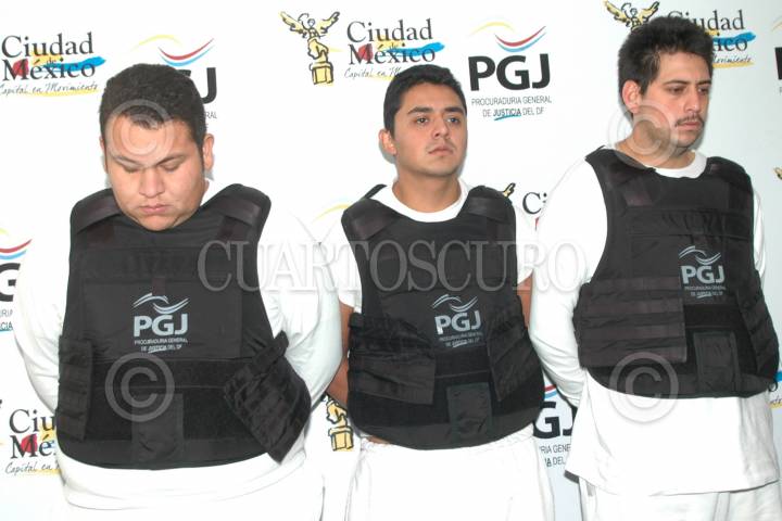 MÉXICO, D.F., 13ENERO2011.- Cumplida la medida cautelar de arraigo, la Procuraduría General de Justicia del Distrito Federal ejercitó acción penal contra de Miguel Ángel Martínez García, Narmer Gibran Ortega Gómez y Horacio Vega Martínez quienes ingresarán en las próximas horas al Reclusorio Preventivo Oriente por presuntamente integrar un grupo delictivo dedicados a exigir dinero a comerciantes; en cumplimiento a una orden de aprehensión por los delitos de secuestro y extorsión FOTO: LUIS CARBAYO/CUARTOSCURO.COM