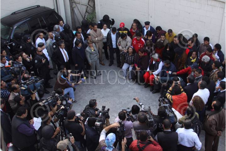 QUERETARO, QUERETARO, 21MARZO2010.- José Calzada, gobernador del estado, junto a los senadores, Manlio Fabio Beltrones, Tomás Torres, Socorro García, Amira Gómez, asi como el presidente de los Derechos Humanos de la entidad Adolfo Ortega y el Secretario de Gobierno Jorge García; visitaron a las indigenas Alberta y Teresa en el CERESO femenil de San José El Alto. Ambas mujeres fueron encarceladas presuntamente por haber secuestrado a agentes de la AFI en 2006. FOTO: DEMIAN CHAVEZ/CUARTOSCURO.COM
